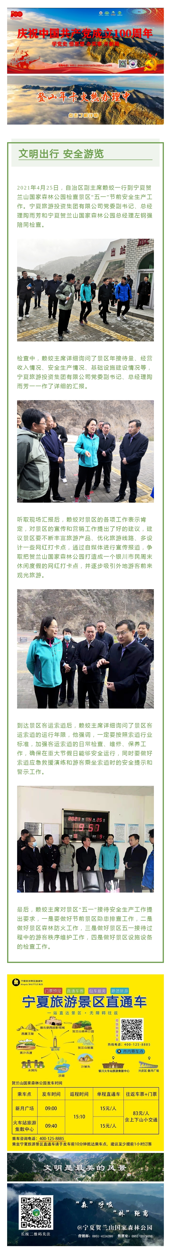 自治区副主席赖蛟至宁夏贺兰山国家森林公园调研景区“五一”节前安全生产工作