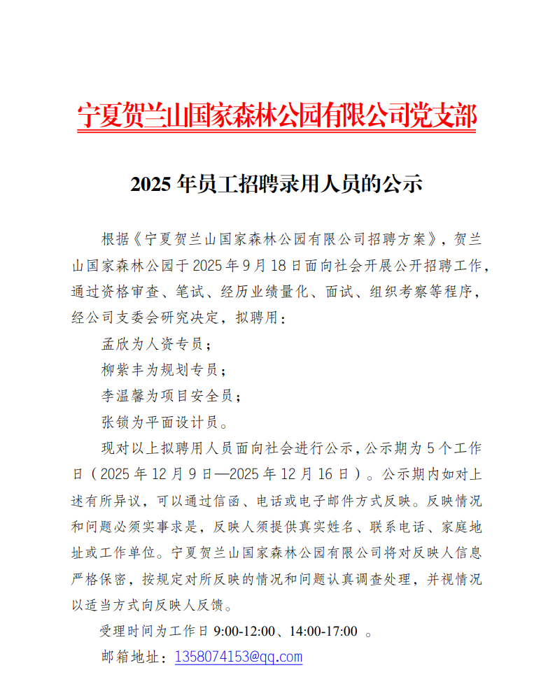 2025年员工招聘录用人员的公示