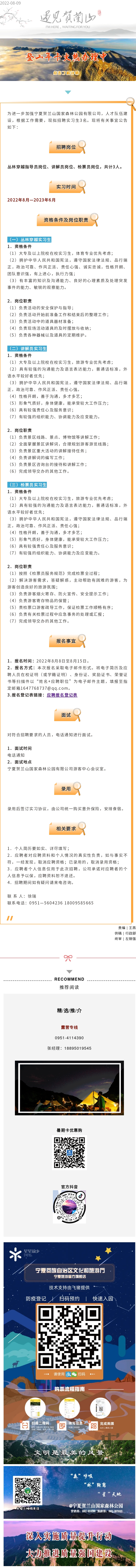 宁夏贺兰山国家森林公园有限公司2022年实习生招聘公告